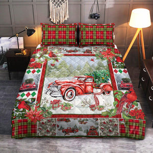 Cardinal Christmas Red Truck Quilt Bedding Set