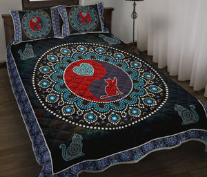 Cat Mandala Ying And Yang Style Quilt Bed Set - Love Quilt Bedding Set