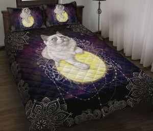 Cat Moon Quilt Bed Set - Love Quilt Bedding Set
