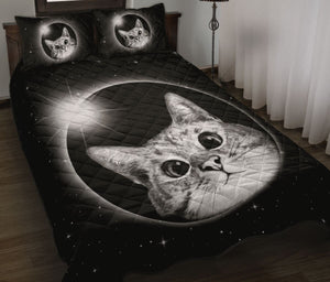 Cat Love Dark Moon Quilt Bed Set - Love Quilt Bedding Set
