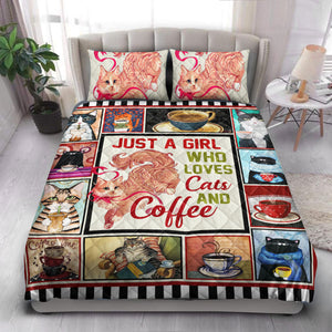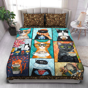 Cat Coffee Quilt Bedding Set