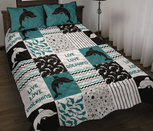Live Love Dolphins Pattern Quilt Bed Set - Love Quilt Bedding Set