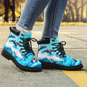 Dolphin Ocean Paint Boots Sky - Love All Season Boots