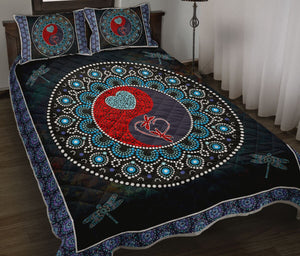 Dragonfly Mandala Ying And Yang Style Quilt Bed Set - Love Quilt Bedding Set
