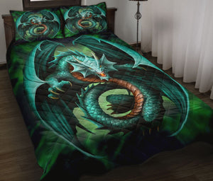 Dragon Tattoo Green Smoke Style Quilt Bed Set - Love Quilt Bedding Set