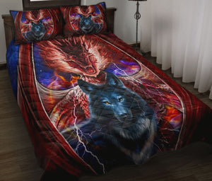 Dragon Fire And Wolf Galaxy Light Style Quilt Bed Set - Love Quilt Bedding Set