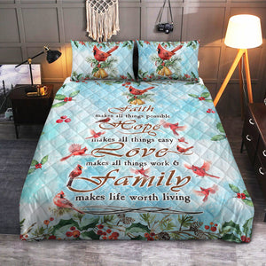 Cardinal Faith Hope Love Family Quilt Bedding Set