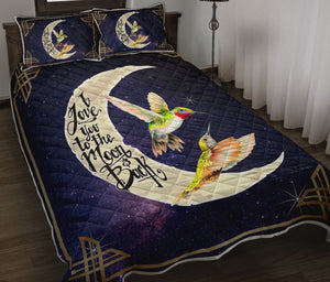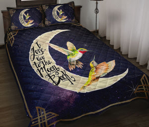 Hummingbird I Love You To The Moon And Back Quilt Bed Set - Love Quilt Bedding Set