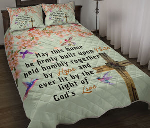 May This Home Be Quotes Cross Hummingbird Quilt Bed Set - Love Quilt Bedding Set
