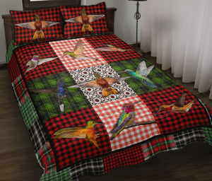 Hummingbird Merry Christmas Pattern Style Quilt Bed Set - Love Quilt Bedding Set