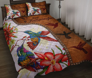 Hummingbird Art Leather Style Quilt Bed Set - Love Quilt Bedding Set