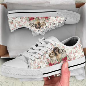 Shih Tzu Flower Background - Low Top Shoe - Love Low Top Shoes