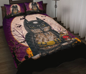 Owl Halloween Art Style Quilt Bed Set- Love Quilt Bedding Set