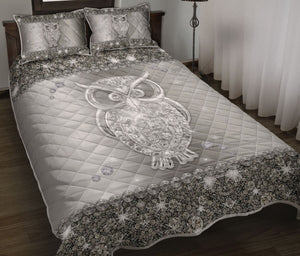 Owl Mandala Grey Quilt Bed Set - Love Quilt Bedding Set