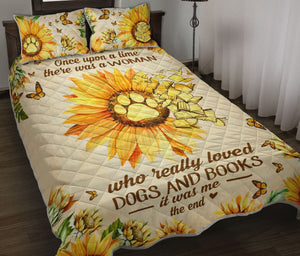 Dog And Book Sunflower Butterfly Watercolor QBS Comfortable Quilt Bedding Set Bedroom Decoration Twin/Queen/King Size Bedding