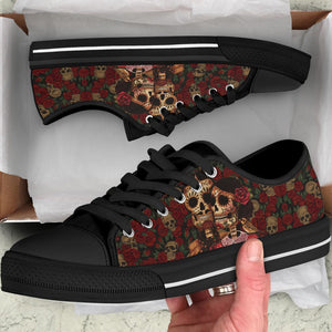 Skull Couple Rose Low Top Shoe - Love Low Top Shoes