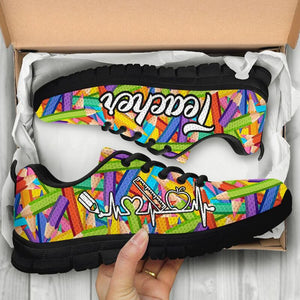 Teacher Pencil Lt Shoes Sneakers, Running Shoes, Shoes For Women, Shoes For Men, Custom Shoe- Love Sneakers