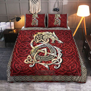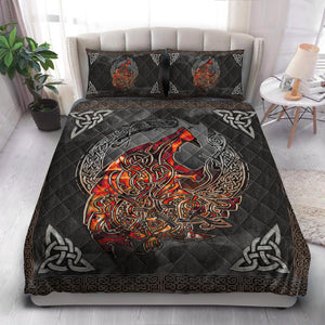 Viking Ravens Fenrir Skoll Quilt Bedding Set