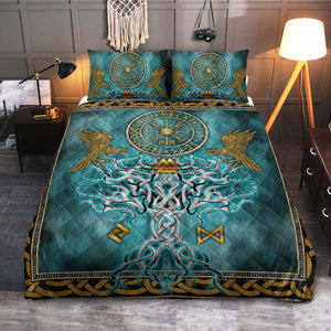 Viking Compass Yggdrasil Raven Quilt Bedding Set