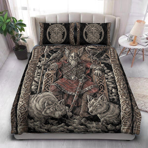 Viking Odin Raven Wood Style Quilt Bedding Set
